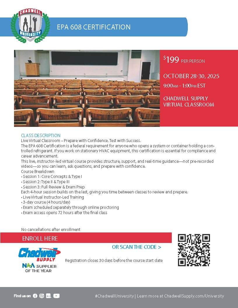 EPA 608 Certification Course - CHADWELL SUPPLY VIRTUAL CLASSROOM